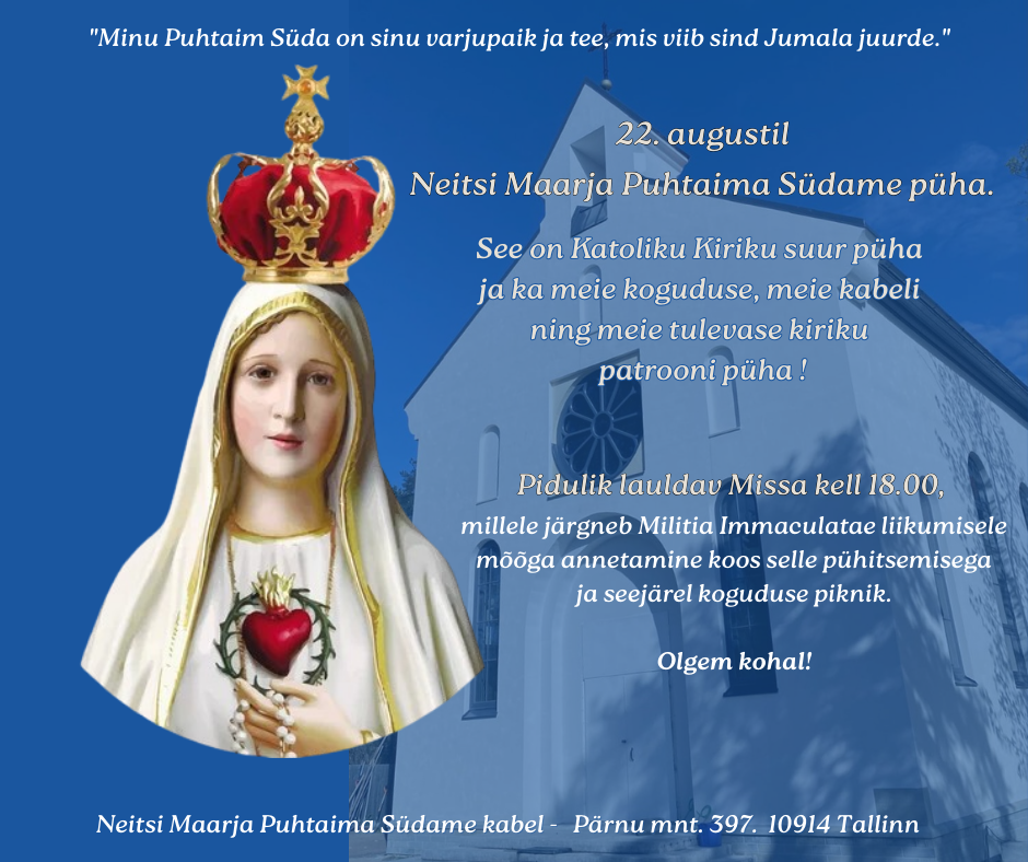 Kutse 22 augustiks – Neitsi Maarja Puhtaima Südame püha