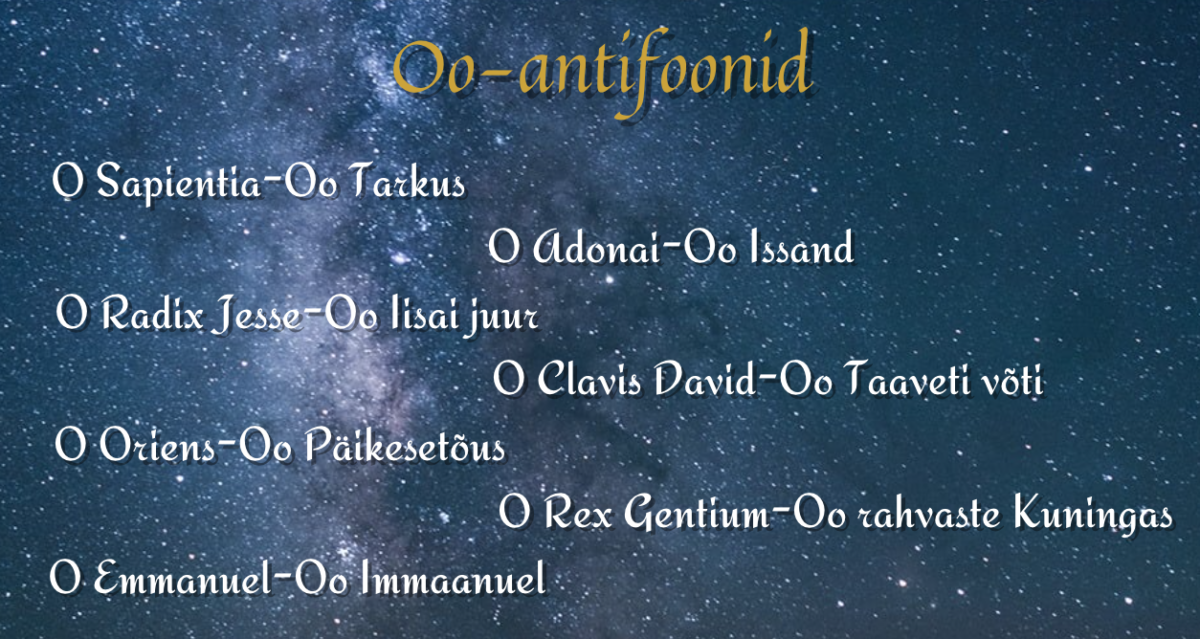 Oo-antifoonidel on Advendi viimasel nädalal eriline tähtsus. Need iidsed palved pärinevad 8. sajandist ja neid lauldakse või loetakse vespri, õhtuse tunnipalvuse ajal. Antifoonides pöördutakse Kristuse poole tiitlitega, millest igaüks kirjeldab Tema olemuse ja missiooni eri aspekti.